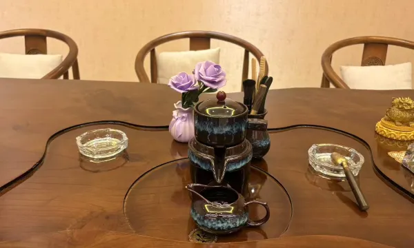 在路边看到这家酒店就进来问了问价格,合适就住啦,酒店坐标很明显捏,一栋大楼立于红绿灯交叉口,十分好找,酒店对面就是一条商业街呢,吃饭呀、超市呀应有尽有,步行几分钟就能到达呀。挺方便的,酒店的大厅环境很好,还配备了医药箱,免费下午茶。酒店一楼还有一个茶室也可以当作小型会议室,问过前台入住客人是可以免费使用的,正好给我们提供了一个安静私密的小空间,这边墙上的摆件都好有设计感,改天找老板要个链接哈哈,桌上还有专门的茶具和茶包,可以自己沏茶,来这里商务洽谈也是个不错的选择呢。