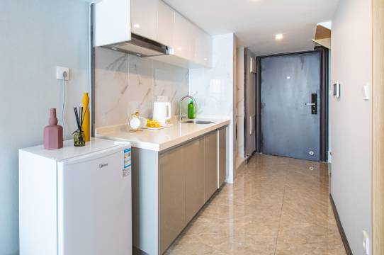 房间设计氛围拉满,性价比超高,虽然是公寓楼层高。房间冰箱洗衣机投影设备齐全。而且去高铁站非常快,步行几分钟直通桥直达。去二马路,金町湾和红海湾也很方便。