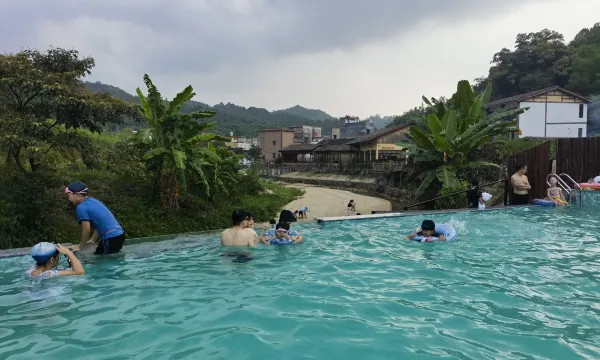 民宿环境超级好,很喜欢这种幽静的世外桃源,就是小桥流水人家。泳池水很干净,溪水清澈见底,和小朋友玩得好开心。就是楼梯间有些灰尘,能清洁一下就更好了!