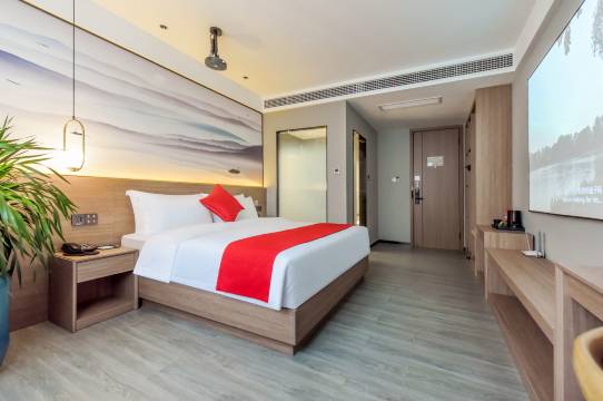 房间很干净,自动窗帘 空调效果也很好。店内的服务人员也很好。下次来岳阳还会入住。元旦涨价也不多,不像别的店翻倍的涨。