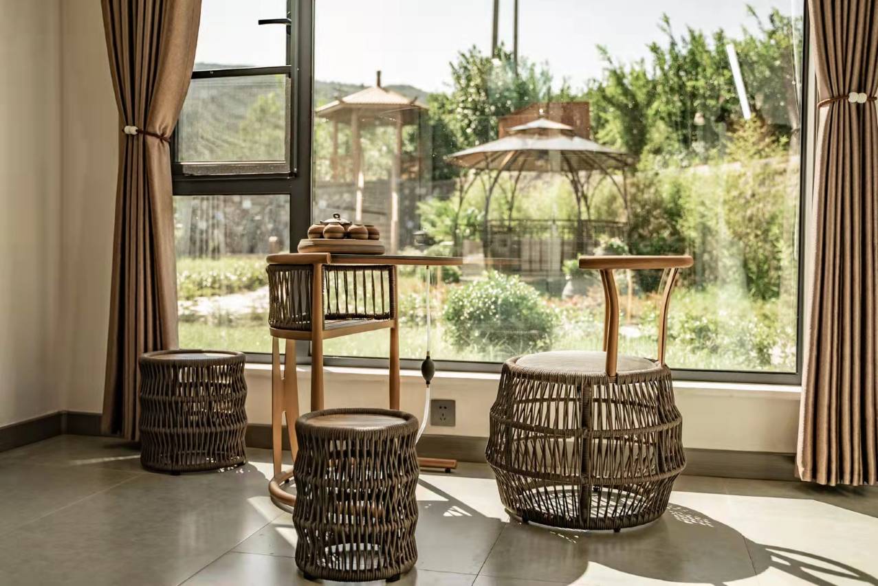 民宿南依骊山,建筑设计匠心独运,风格古朴雅致,舒适而宁静,将传统元素与现代建筑融合,一处集住宿、美食、饮酒、品茶、休闲、静心的世外桃源。