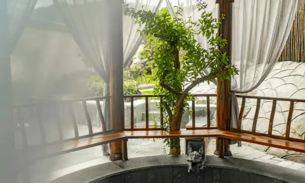 登露台而见青山悠然,脚下流水潺潺,秋千悠悠,风过庭院,星光散落,夜枕青山。远离都市纷扰,结庐在青山之畔,只为寻觅一处心静所在,处处体现旅居与自然之间的生活哲学。诗与远方,见于骊山。青山筑境,心静即心境。“骊山脚下,民宿”我在这里等您归栖。