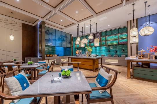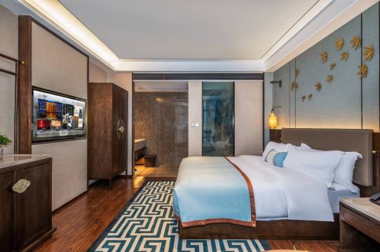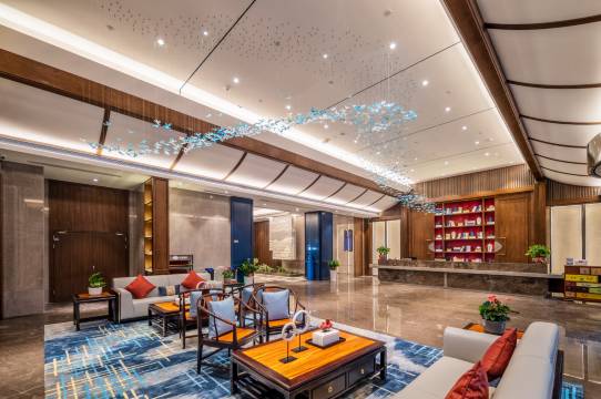 一进大堂,我就被青鸟、汉服元素、宫灯墙、千里江山图和现代灯光碰撞出的美感彻底吸引住了。暖柔的光线裹着周身,瞬间像穿越回了千年前。这种把历史文化和现代审美揉得恰到好处的设计,每一处细节都满是对传统文化的尊重与喜爱,真的太合我心意了。