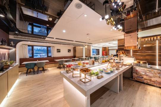 公共设施更是戳中需求:24小时自助洗衣房带烘干功能,出差换洗衣物当天就能搞定;健身房器材齐全,跑完步还能喝到免费柠檬水。一楼书吧安静雅致,候高铁时翻两本书超惬意,相招餐厅早餐种类多,东北特色的粥品和小菜很对胃口。