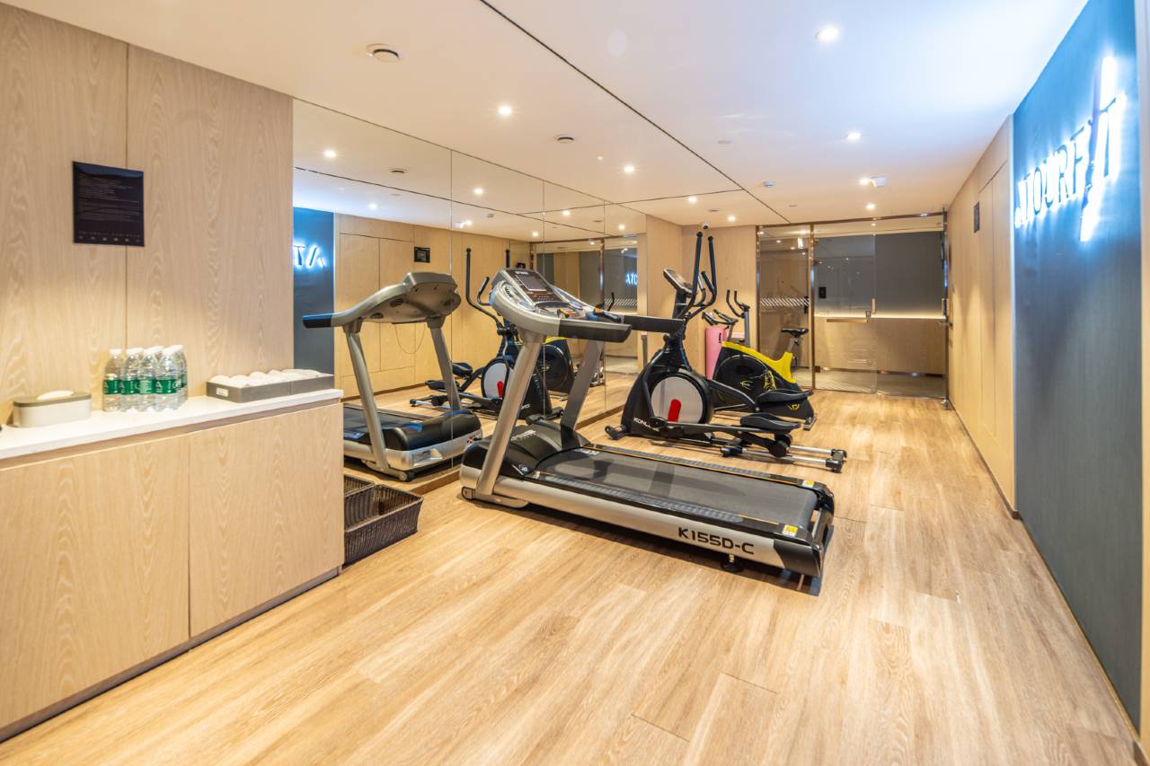 公区设计太赞了,大堂书吧能会客小憩,24小时开放的“汗出”健身房器材齐全,跑步机、哑铃组满足日常锻炼需求。还有免费自助洗衣房,从洗涤到烘干一站式搞定,对商旅太友好。高速Wi-Fi覆盖全楼,前台24小时服务,赶早班高铁前还能享用品种丰富的早餐,设施细节拉满!