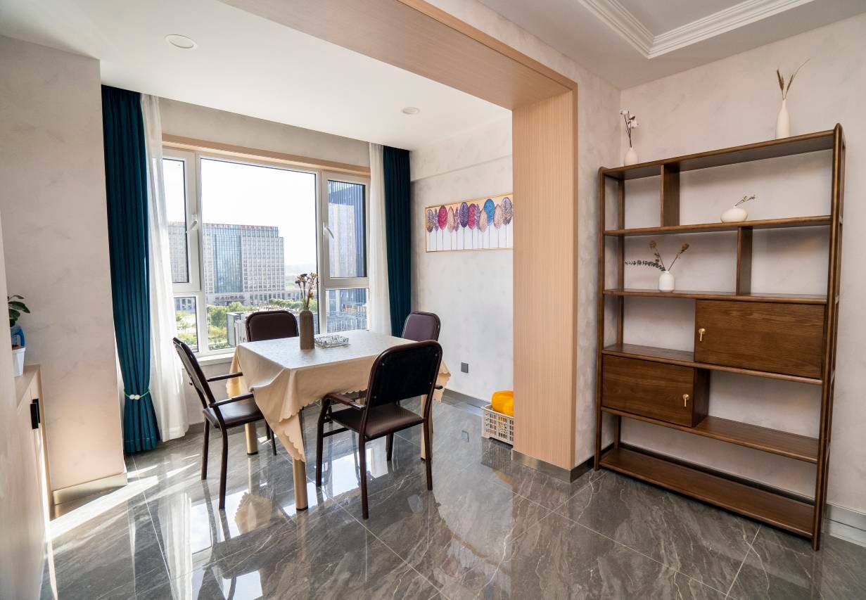在新区,导航很好找,属于酒店式公寓,楼下停车也很方便。房间干净、整洁,有小家的感觉。楼下周边一圈都是商圈,吃很方便。还有个挺大的超市。