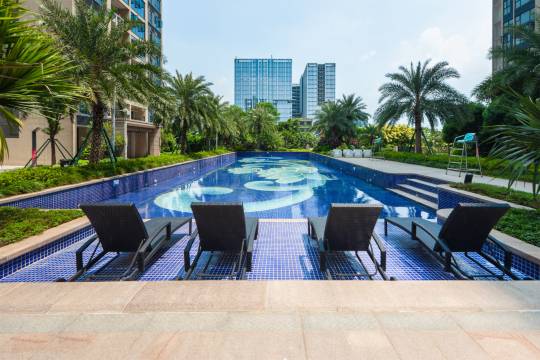小区很新,景色也很好,出行便利,吃喝玩一天回来,睡眠比较浅,要求前台安排了靠小区的房间,晚上睡觉挺安静的。前台小姐姐很可爱🥰,下次再来时定个大间