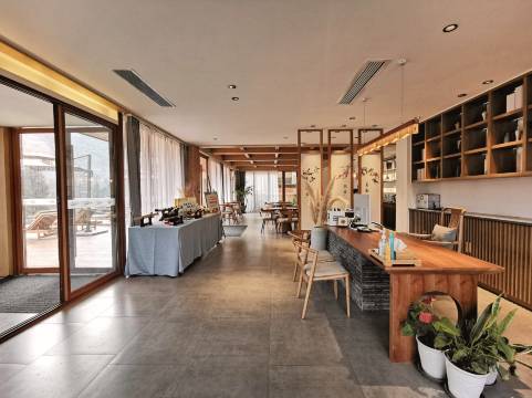 云孚里隐宿.剑山居剑门关度假民宿,取推窗见山之意。 民宿面朝小剑湖、背靠山腰而建,以24节气为主题,在村居上原址原貌原建,特色的“偏厦子”建筑形态,还原了川北民居的传统风貌。民宿拥有独具川北特色的房间,除此之外还配备有无边际泳池、270度休闲茶吧和早餐厅;坐卧之间,观山望崖揽湖,是区域山居度假民宿的代表。