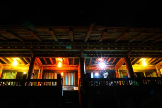 房源由一栋20多年的传统藏式民宅改造而成,占地面积近2000平方米:由主楼、辅楼、200平米庭院、100平米停车场和1000平米草场组成。 在保留原有藏族卯榫木质结构和传统藏族壁画和家具的基础上,增设玻璃窗户、隔音和防火水泥层,每间客房均配有地暖、电热毯、干湿分离的卫生间和热水淋浴,以保证舒适的采光和取暖。