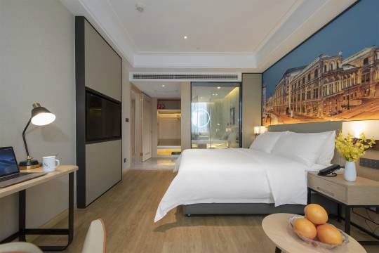 到酒店已经很晚了,有保安引导,停车很方便,前台小姐姐服务很好主动给我升级了房间 ,给我挑选了一间大点安静的房间。房间卫生也都可以,床垫很软睡得蛮舒服的,点了外卖,还是机器人送的餐,真不错。。。。