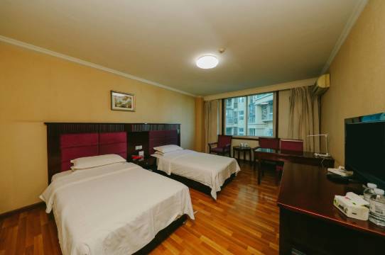 是个老酒店了。卫生比较干净,设施比较齐全但稍显陈旧。但是服务还是不错。入驻停车是免费的,停车场的保安师傅很尽责。