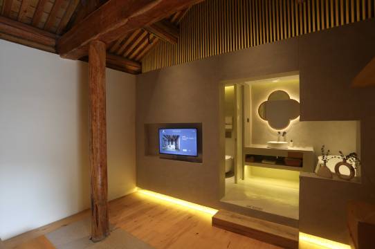 客房集中在四合院的后院,只为保证每间房都能做到度假的美好。原木的质感和纹路,呈现出极高的审美,抚摸的触感舒适。身处这样的房间,切实感受到“家是自己最后的岛屿”。晴时与三五知己园中煮茗畅谈,雨时闲卧纱窗下听雨打芭蕉,坐卧之间皆风景。慢下来,才见真生活。