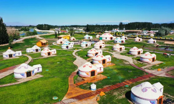 东归西海部落酒店位于新疆博湖县-国家AAAAA级博斯腾湖大河口景区。公元1771年,游牧于欧洲伏尔加河流域的土尔扈特部落不远万里回到祖国,书写了人类历史上悲壮的爱国史诗—东归,为维护国家统一民族团结树立了光辉的榜样,为中华民族留下了一笔宝贵的精神财富。回到祖国怀抱的人民得到了全国各地支援,在博斯腾湖畔列毡帷驻牧,重建家园,博斯腾湖也成为万里东归的栖息地。在长期生产、生活中孕育了许多珍贵的非物质文化遗产。近年来,博湖县持续加强非物质文化遗产的保护和传承,组织实施非物质文化保护工程,博湖已成为全疆拥有非遗项目最多的县。万人萨吾尔登、千人托布秀尔于2013年成功申报上海大世界基尼斯纪录。坐落于博斯腾湖畔的“东归西海部落”是一个将非物质文化遗产同民宿、餐饮、娱乐及体验相结合的文化空间的缩影。 东归西海部落主题客房,整体风格展示东归蒙古族毡房、全景草原、特色餐饮、民俗文化等元素,设置民宿体验区、非遗文化展示区、东归餐饮区、非遗商品展示等功能区,餐饮包括博湖蒙餐,博斯腾湖鱼宴,新疆特色美食等,可承接婚宴、团餐、家庭聚会等,可同时满足100人就餐及住宿,酒店不定期举办篝火晚会、非遗演艺、夜市美食等活动。将为全国各地的游客带来一场近距离体验游牧生活和感受非遗文化的休闲度假旅游。