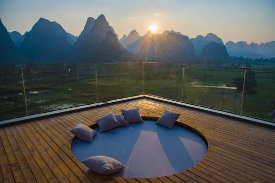 酒店环境太好了!地理位置优越,风景绝佳!对宠物友好!非常感谢前台小周妹妹给升级了房间,晚上到店很晚了,小周妹妹还给我们做了可口的饭菜。酒店房间设施齐全,干净整洁,床品舒适,晚上安静睡眠很好!停车方便,下次再来阳朔肯定还会选择继续入住。