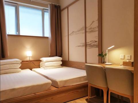 名宿布置挺有艺术氛围感,办公,聊天场所齐全。办公旅行出差可以选择。位置比较合理。价格更有性价比。订的单人间,房间内空间略微小点。一个人够用!