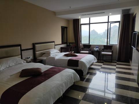 窗户外面,就能看到很多山山相环,景色很好。房间够大,中央空调,吃饭地方不多,早餐店还可以,附近有个加油站。