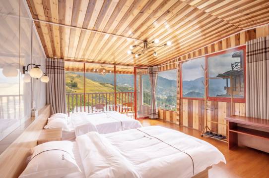 好评!国庆和爸妈一起去龙脊梯田玩,提前一天晚上到,第二天就能看见龙脊梯田的日出!而且在房间就可以看到。民宿是传统的木楼,所以声响会有点大,但是住一晚没有太大影响。民宿到几个观景台大概要走个20分钟左右这样,游玩龙脊梯田很方便。饭菜家常,好味道,价格不算贵!总的来说是一次很好的住宿体验!