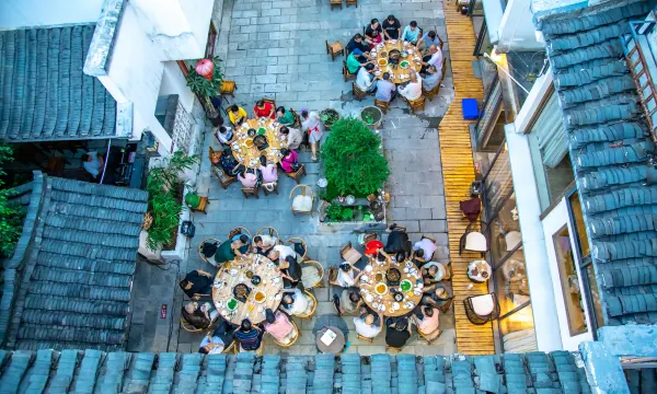民宿村落位于风光旖旎的两江四湖的桃花江岛上、光明山下;毗邻世界闻名的国宾洞“芦笛岩”、漓江画派创始人阳太阳老先生的诞生之地、也是传说中观音坐莲之地(西游记取景地之一)、在这里桃花江蜿蜒而过,在此形成了一个湾畔,被称为桃花湾,这里依山傍水、静谧悠然、生态乡村风光、离尘不离城的隐居度假圣地。,民宿由两个庭院花园和五栋独栋别墅组成,一楼为公共区域设有前台、三个茶室、健身房、影院书吧、中西餐厅和娱乐室组成,民宿和岭南印社文化研究院共同打造一家艺术家民宿,民宿众多装饰品为岭南印社文化研究院艺术家创造作品,让您置身于艺术品殿堂,民宿定期与岭南印社文化研究院艺术家开展艺术文化讲座交谈。让您在体验桂林山水同时感受桂林文化魅力