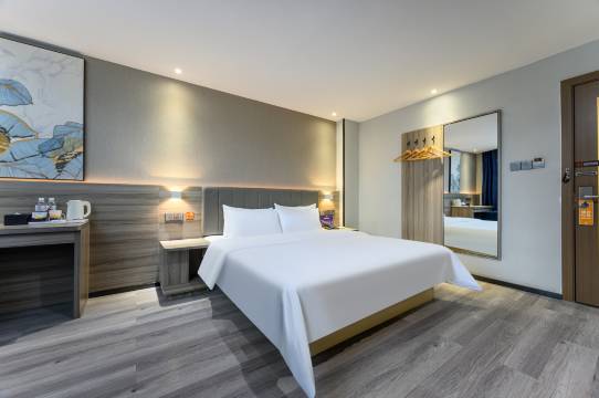 酒店房间设施齐全,位置很便利,附近买东西也很方便旁边就有一个超市,酒店附近吃饭消费也很划算,前台小姐姐服务态度很好,有求必应