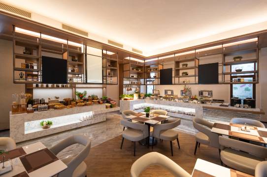 酒店配有极具特色的西餐厅与茶水吧,为宾客提供选择多样的世界美食体验。此外酒店还拥有大小两个会议室,会议室配置有现代化会议设施,无论是商务活动还是社交聚会,专业的团队成员竭诚为宾客打点每个细节,确保每个活动的成功举行。