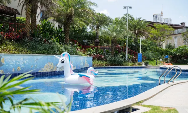 酒店配备500平方米的室外游泳池,包括自由泳池、儿童戏水池;同时有17个特色室外温泉池,健身娱乐中心,儿童活动区,为宾客的舒适旅途更添乐趣。