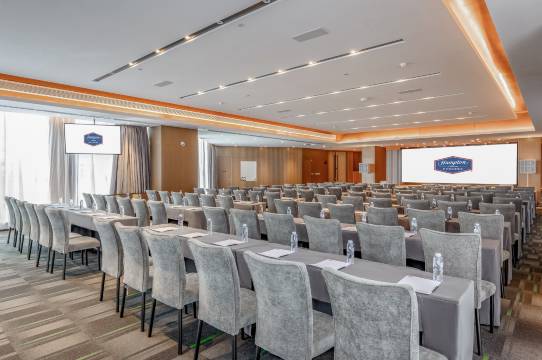 东莞中心广场希尔顿欢朋酒店,是希尔顿集团旗下中高端国际商务连锁品牌,由锦江集团运营管理。酒店位于东莞南城体育路11号,占踞东莞核心位置,紧邻市政大楼、市中心广场、会展中心、民盈国贸大厦,地处东莞CBD区中轴线上的轴心经济核心地段,是您政商差旅之选。酒店拥有时尚豪华客房158间,以及独具希尔顿欢朋特色的"HUB"大堂,集聚会、休闲及商务功能于一体;配有一线品牌的乐动健身房、功能齐全的无柱式大型宴会厅1800㎡,满足不同宴会需求,另配有400㎡无柱式会场及多间精英会议室、自助洗衣房、免费高速 WIF 等;现代时尚的欢朋餐厅提供清新营养的健康热早餐,酒店客房配有品牌双专利高端睡眠床垫,打造云端恬梦体验,部分房间配备亲子沙发床,延伸亲子家庭的睡眠空间;美国护肤领域殿堂级品牌“ Peter Thomas Roth —彼得罗夫,其纯天然的成份能有效舒缓您的疲惫,打造专属希尔顿欢朋沐浴体验,致力于为客户提供恰到好处的知己服务。贴心服务只为更懂您,东莞中心广场希尔顿欢朋酒店让您每一次都亨受到高品质的快乐入住体验