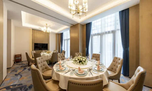 酒店内餐饮服务设施包括美悦荟中餐厅、月季西餐厅和时光艺术沙龙(大堂吧)。美悦荟中餐厅共7间别具特色的VIP贵宾房,出品集中华美食之养生美食以及时令菜为主,结合传统本邦菜及海鲜等组合产品。每间包厢都有露台,花园式中餐包厢,满足宾客宴请与聚会的需求同时根据节气配以时令菜。时尚、轻奢型的西餐,位于酒店1楼,150个餐位。融入艺术的大堂吧,与超现实主义达利碰撞,感受“流逝的时间”。