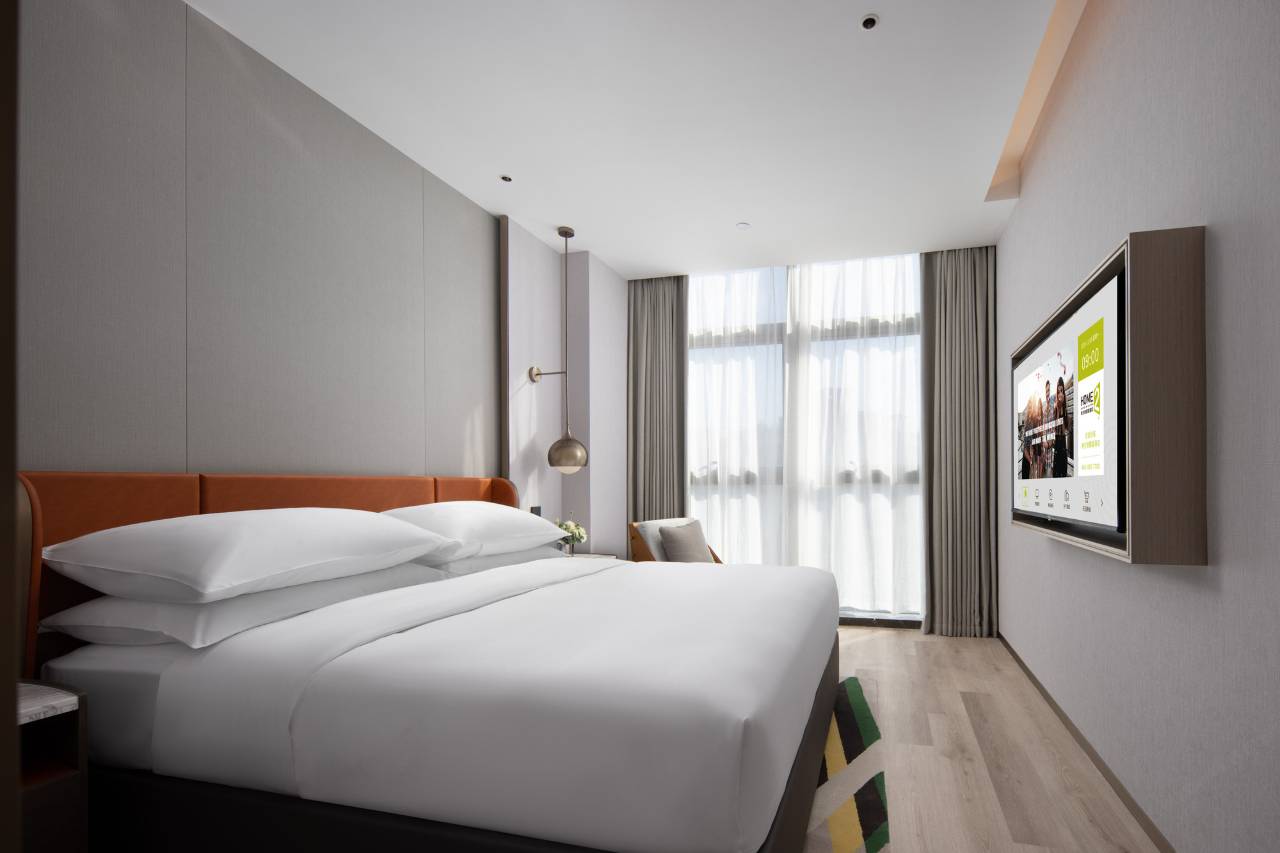 入住体验满分!较新的酒店就是各方面都比较好,从check in到退房都十分丝滑,尤其要给前台点赞,态度非常好👍🏻帮忙预订车和定时叫早,还给升级了房型,如果遇到工作人员她们都会主动打招呼。酒店整体装修新净,是原木色、橙色和绿色主调,电梯要刷卡上楼(一楼上去的话需要先上二楼转一下电梯),加上有路过大堂比较安全,外卖有小机器人送餐。房间偏公寓式(有微波炉小冰箱,有studio那味了),房间用品配备齐全,饮用水也有配够,床品舒适干净(软但有承托力的床垫);楼下二楼大堂有洗衣房(不过住的时间短未能使用);卫生间用的是智能马桶有加热、浴室花洒热水充足且地漏排水良好。电视可以投屏不过实际用的时候搜不到投屏设备。有地下停车场,酒店本身地理位置优越,周边是小区比较安静。同等条件下的酒店里希尔顿惠庭可谓是性价比极高的选择,好评!