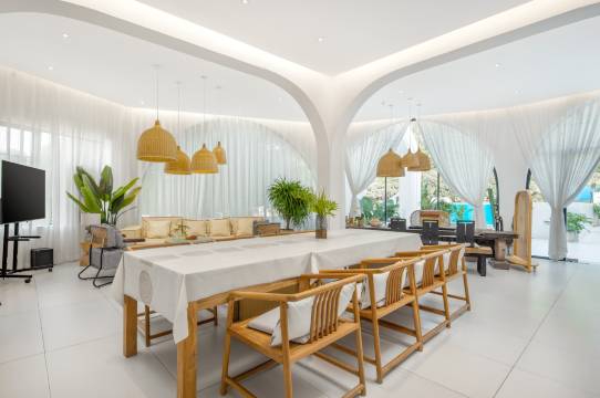 纯白色的建筑配上蓝色泳池,随便一拍都像大片!