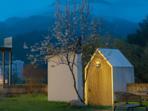 二楼的房间正对着龙尾村打卡点,还是很惬意的,躺床上就能透过落地窗看山山水水。民宿的设施都很不错,全是品牌的,茶具咖啡壶都有。入住的时候很贴心准备了果茶,水果和银耳羹。小姐姐们非常好,提前来村门口迎接,开好了空调,有需求回复的也很快。卫生状况也很OK,卫生死角也一尘不染。早饭味道也很好。民宿走的是精品路线,各方面都还是值房价的。美中不足的是可能不太适合亲子,尤其是有老人和特别小的小孩出行。房型选择较少,双床只能loft,但是二楼的玻璃隔断很低,扶梯也很抖,扶手也偏低,准确的说是梯子,上上下下不是很安全。厕所洗漱区也有落差台阶,床的地台包括房间的家具也都是凸出的直角,这些对带幼童出行都不是非常友好。但是情侣出行的话十万个推荐!!