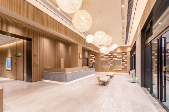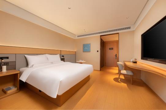 客房的细节把浪漫与实用拿捏得恰到好处!我们选的高级大床房空间宽敞,65寸大屏电视支持投屏,晚上窝在柔软的乳胶床垫上看电影,幸福感爆棚。房间隔音效果超棒,22分贝的静音设计隔绝了外界喧嚣,只有彼此的轻声细语。智能马桶带加热功能,卫浴干湿分离彻底,热水秒出且水温稳定,定制精油洗护用品香气清新,连小冰箱都能存放旅途买的鲜果与冷饮,处处透着贴心。大堂的原木色系装修搭配淡淡的禅茶香,奔波后坐下喝杯免费原叶白茶,瞬间治愈疲惫。