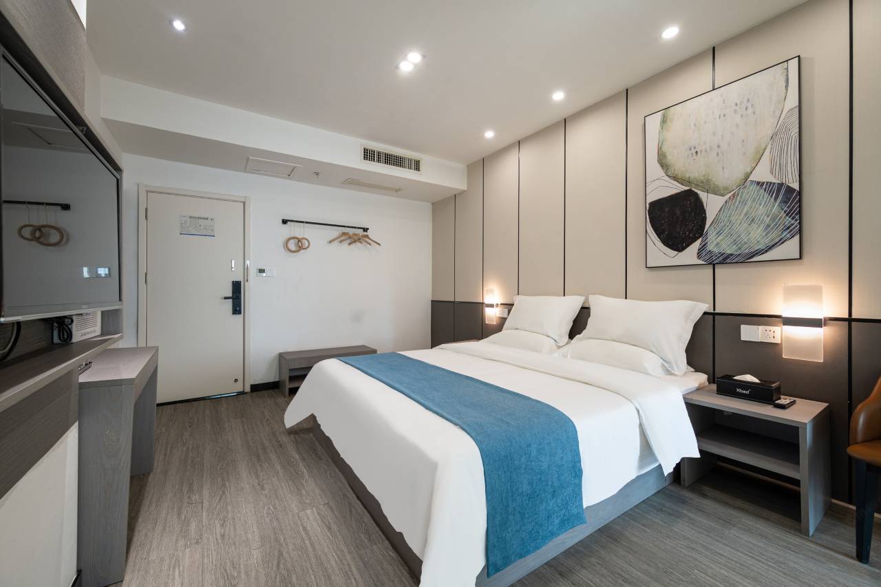 床铺很舒服,地板略有不平,不影响休息。外面吃喝玩乐比较多,值得推荐在旁边有办事需求的人。自助办理入住比较有新意,没有房门钥匙,还能刷脸开房门也可以密码