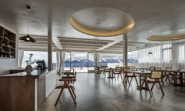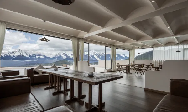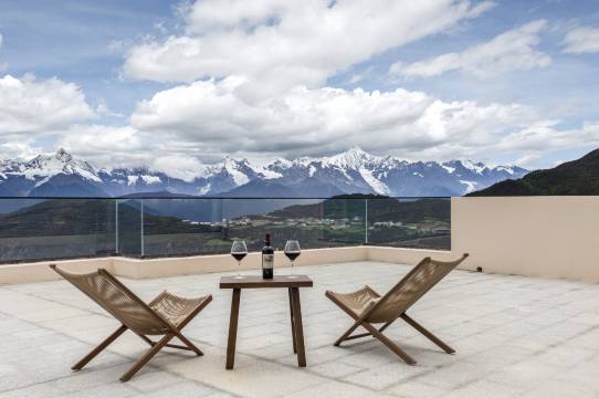 酒店位置非常好,拉开窗帘就可以看到雪山,房间内设施齐全,房间里有丰盛的点心和水果,下午五楼餐吧还有可口的下午茶。餐吧外是一个雪山景观平台,非常适合看日照金山。早餐对于民宿来说已经很丰富了,退房时还送了伴手礼,真的贴心。虽然没看到日照金山,但是入住体验非常好,已经很满意了。