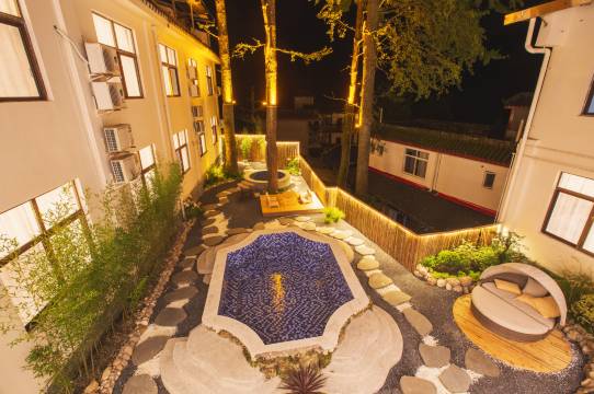 酒店工作人员特别热情,服务很好。没有喧闹,特别的安静。里面有温泉、滑滑梯、荡秋千,住起来特别舒服,早餐也特别好吃。位置离古镇很近,古镇旁边有小河,特别适合小朋友耍,很值得大家去住。
