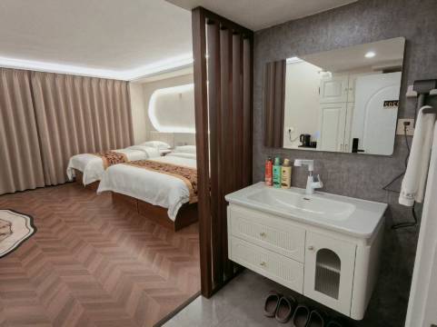 房间很干净,住的二楼家庭房,车停楼下直接能看见,阳光明媚,窗帘严实,睡得很好!老板姐姐很贴心,门是密码锁不用带卡出门很方便!