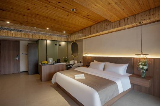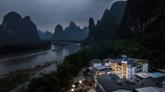 房间宽敞明亮,装修风格现代并配有落地玻璃窗、电动化开启窗帘,透过窗户可看到漓江景色。设施配套非常好,卫生间整洁干净,干湿分离并提供一次性毛巾。出酒店门口2分钟就到达漓江边20元拍摄点,10分钟可到兴坪古镇游玩。住在这里非常方便,去九马画山,朝板山游漓江就在附近。本店顶楼是宽敞干净的歺厅,菜式可口,特别是本店竹筒鸡食过回味。老板人非常好,有求必应,服务周到。我特推荐给喜欢旅行与摄影爱好者。