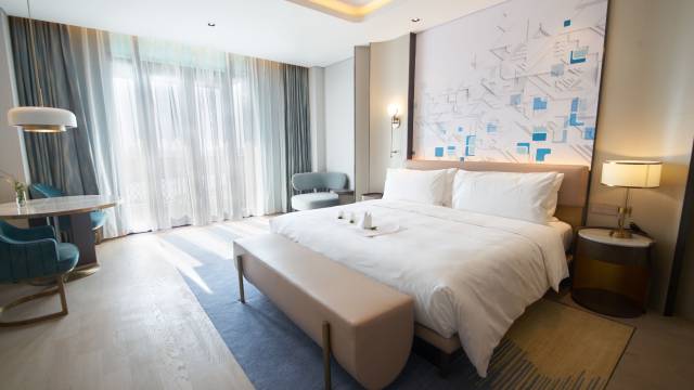 酒店拥有精致典雅的高级客房,包括各类景观房、亲子房、家庭房、套房。客房面积自46平米至180平米不等。现代感的设施及专门定制的家具,给人无处不在的个性奢华体验。全日餐厅、特色餐厅及中餐厅各具风格,联袂呈现独具匠心的地道美味和优质服务;健身房、桌球室、儿童乐园等完善的娱乐配套令您的休闲之旅倍享惬意时光。面积1万m2的豪华会议中心,拥有1个超1,600m2的无柱大宴会厅,2个多功能厅、贵宾厅及大小不一10间会议室,充分满足多种宴会和会议需求。