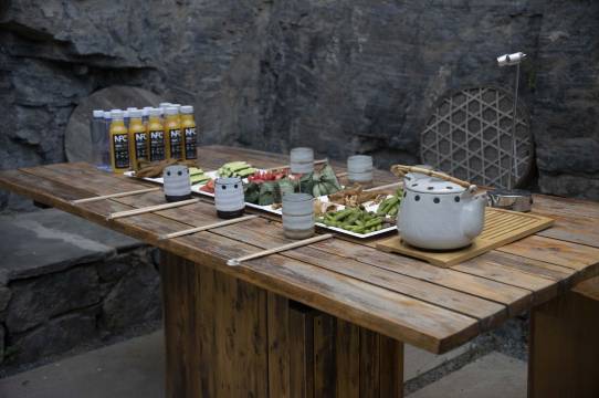 室内配置方面,院主人精心挑选了美国高端科技护发品牌living proof和新西兰天然品牌glow lab作为洗护用品,低钠矿泉水作为客房免费配水;室外公共区域上,依山体走势分别设计了适合放空的观山庭院、可体验柴火灶台也可烧烤的活动庭院,及一个配置了按摩水疗池的私汤庭院,同时二层露台区域亦可用来喝茶,烧烤、开展小型聚会等一系列活动。室内客厅提供投影仪、MARSHALL重低音炮蓝牙音箱、JBL卡拉OK话筒、SWITCH、桌游扑克等一系列娱乐设施。