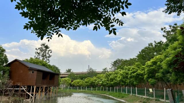 院内赏荷,垂钓,采摘,撸猫,喂养小鹦鹉,小兔子