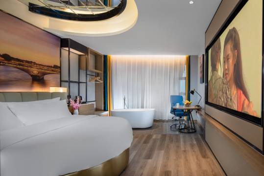 房间挺好,各项设施装修也新,房间智能化也做的不错。早餐送到房间很贴心。门口免费停车很方便,前台帅气小哥服务热情,专业素养。非常不错的一次体验。