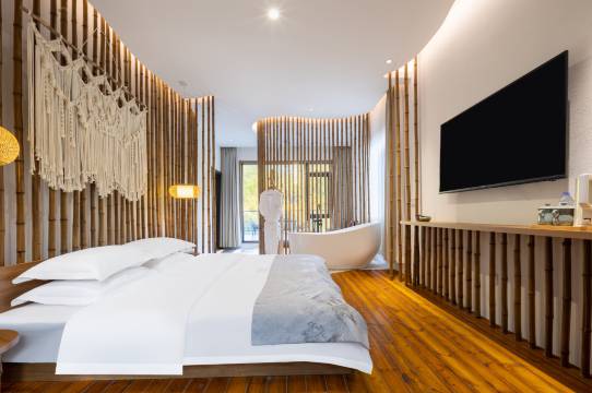 房间干净又舒服,设计很有格调,地暖、空调、热水、WiFi全配齐,冬天老板提前开空调,进房暖乎乎的。床品软乎乎,一觉睡到自然醒,太治愈了~