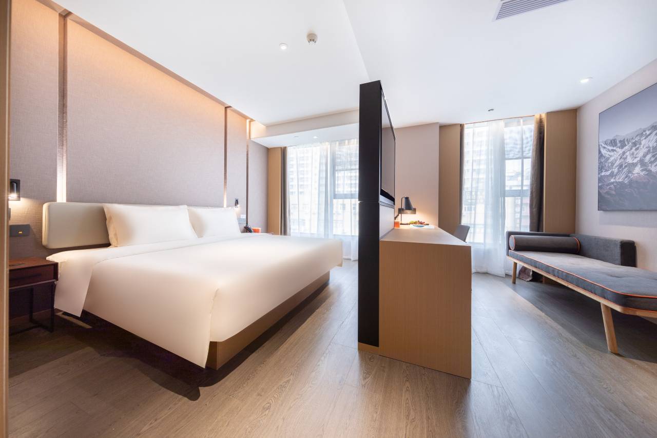 房间干净卫生,前台服务好,办理入住快捷。出差首选,离机场距离也还行,打车半小时,楼下全是吃的,很有烟火气,超级热闹。