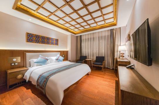 前台服务超级好还免费升级的发型,房间卫生干净整洁采光好,有免费氧气地暖,大厅很有民族特色可以休息,还有免费茶水价格也不贵性价比高,早餐种类丰富下次还选择入住这家酒店。