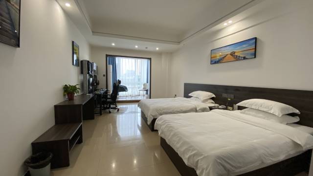 房间宽大,与图片上描述的相符。干净卫生,设施齐全,温度合适,热水足。距离公交站不远,去景点方便,周围吃饭和简单购物都很方便。只是旁边的批发市场卫生条件有些影响心情。