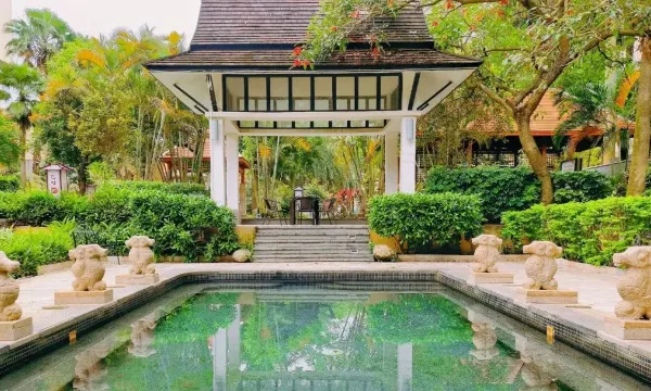 酒店遵循“回归自然、融入现代”的建筑理念,有红树林西餐厅、欧式大堂酒廊、乐满天中餐厅大厅1间及厢房24间。