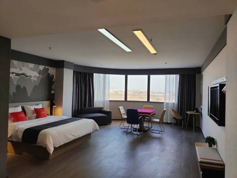 酒店环境不错,简约商务风,清爽干净,入住前都是开着房门通风的,所以到房间里老人不觉得闷或有味道,前台服务也很热情周到,总体体验不错,点个赞👍