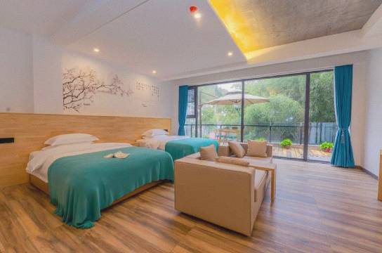 坐落重渡沟景区中心区停车场旁,出行超便捷,闹中取静独享清幽。全屋全景落地窗,躺在床上尽揽山林美景;亲子房配超大观景阳台,遛娃度假两不误。院内清凉泳池,夏日戏水惬意十足。位置优越、出行省心、视野开阔,家庭出游、朋友小聚首选山居美宿。
