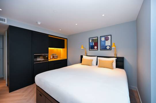 这是一家很棒的公寓式酒店。我们预订了一间单间公寓,房间的精心设计给我们留下了深刻的印象。小厨房设施齐全,可以满足烹饪简单餐食的所有需求。房间非常干净舒适。工作人员非常友好,酒店位置也很棒,靠近公共交通和市中心。唯一的小瑕疵是床单不太合身,而且床会稍微移动,所以我们每天都要整理床单和床垫。希望他们以后能改进这一点。