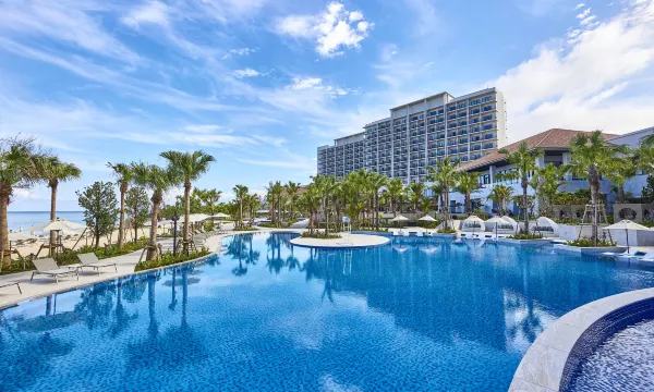 酒店独享一大片海滩,环境优雅,房间宽敞明亮,海景一流!早餐丰富多彩,离机场很近,体验感很好,我还会再来!