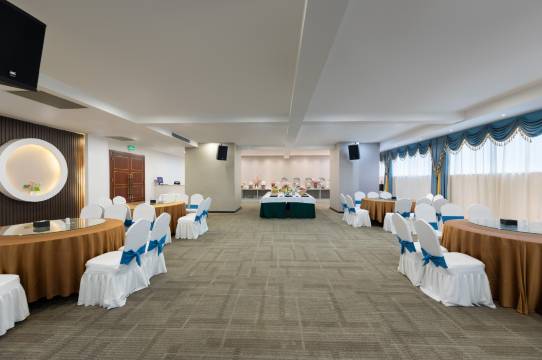 酒店配套3000平方米的多功能宴会厅,可同时容纳1000人就餐就会,专业的宴会服务团队提供全方位的活动策划,满足不同商旅人士的各式需求,是各类商务会议、社交宴请、一站式婚礼、主题宴会等各式活动的理想之选。美好服务,就住豪莱雅。